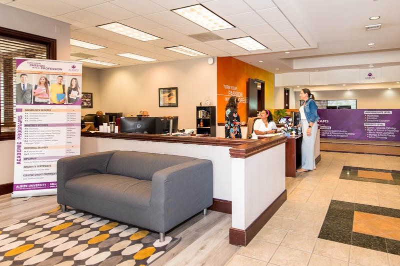 The newly acquired Annex building adjacent to the Miami Campus at 9770 NW 25th Avenue, Doral, FL 33172 has opened a One-Stop-Shop for Albizu University Enrollment and Student Services. The Annex location will serve as a central point of contact for walk-in prospective, new and continuing students. On-site staff members are available to answer inquiries about financial aid, registrar and bursar functions in a single place. The Annex building facility is designed to provide a central home to:
